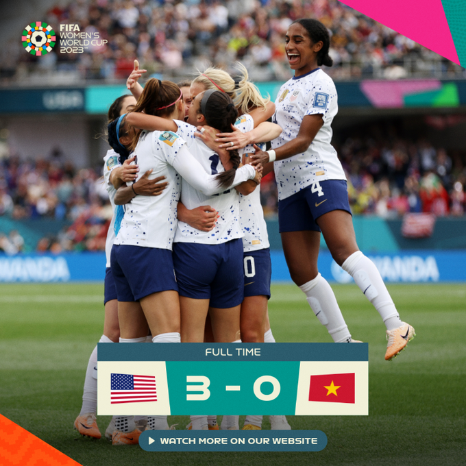 Estados Unidos, el máximo ganador de títulos mundiales en el fútbol femenino, goleó 3-0 a Vietnam en su debut esta noche.