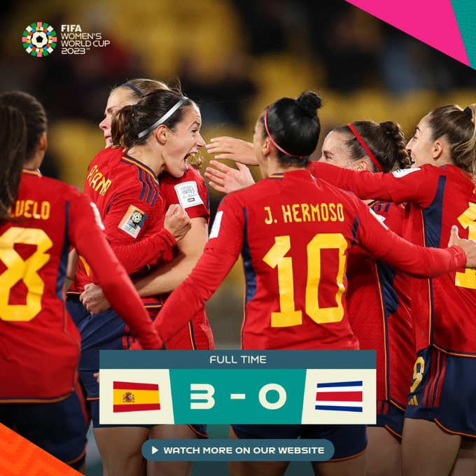 La selección española venció 3-0 a la selección de Costa Rica, en partido disputado esta mañana en el estadio Regional de Wellington, en Nueva Zelanda, por el Grupo C. Los goles los anotó Valeria del Campo Gutiérrez, ante su portería, a los 21 minutos. , Aitana Bonmati, a los 23, y Esther González, a los 27, todas del primer tiempo.