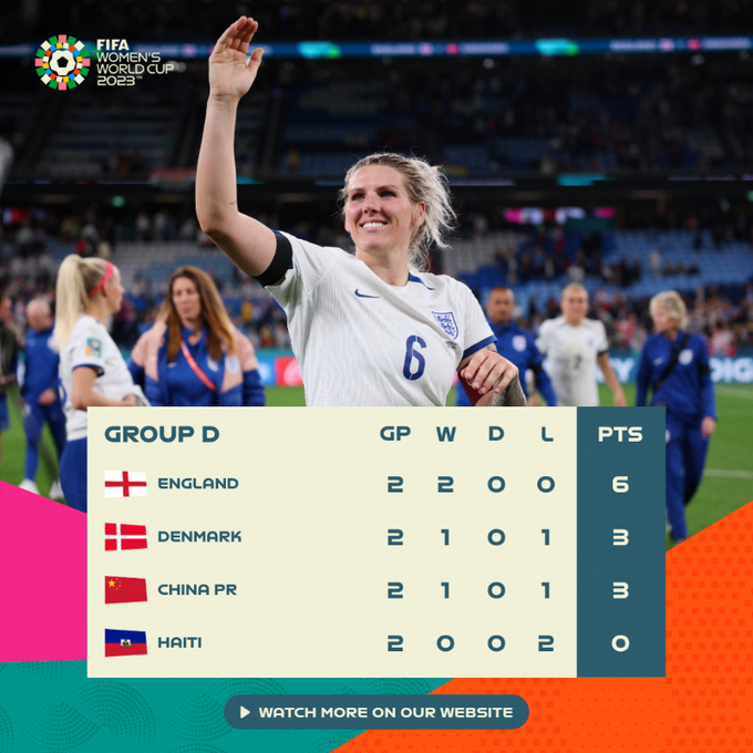 El Mundial femenino de 2023, que se juega en Australia y Nueva Zelanda entre el 20 de julio y el 20 de agosto, tiene su novena jornada de competencia, donde Inglaterra venció por poco a Dinamarca y ahora es líder del Grupo D, mientras que China venció a Haití por la mínima. y sigue vivo en la zona.
