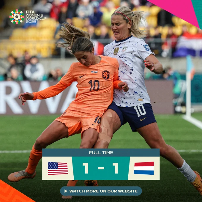 Estados Unidos y Holanda empataron 1-1 y se repartieron los puntos en su duelo de este jueves por la segunda jornada de la fase de grupos del Mundial. Los bicampeones (2015 y 2019) fueron superiores pero la efectividad fue mayor por parte de los europeos. Tras sus respectivas victorias en la primera jornada, ambos países ahora tienen 4 puntos en el grupo E.