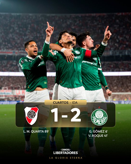 La fiesta que preparó River Plate en el Monumental de Buenos Aires, la disfrutó Palmeiras con un baile en el primer tiempo que le bastó para llevarse el triunfo por 1-2 el miércoles en la ida de los cuartos de final.