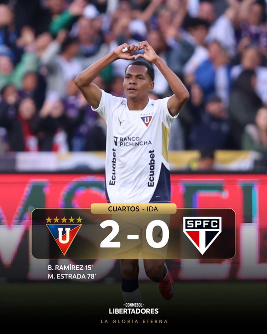 La visita a la Casa Blanca resultó lamentable este jueves para Sao Paulo, cuya defensa se fisuró a los 14 minutos con Bryan Ramírez y se rompió en el 78 por culpa de Michael Estrada, goles que dejan a Liga de Quito con un 2-0 para definir esta llave de cuartos de final el 25 de septiembre en el Morumbi.