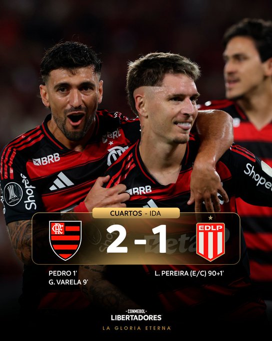 Dieciséis segundos le bastaron al Flamengo este jueves para allanar el camino hacia las semifinales cuando Pedro anotó el 1-0 y se hizo inalcanzable con un segundo gol a los 8 minutos de Varela ante un Estudiantes de La Plata que aunque reprobó, al perder por 2-1 en la ida en el Maracaná, lo hizo sufrir al final del partido.