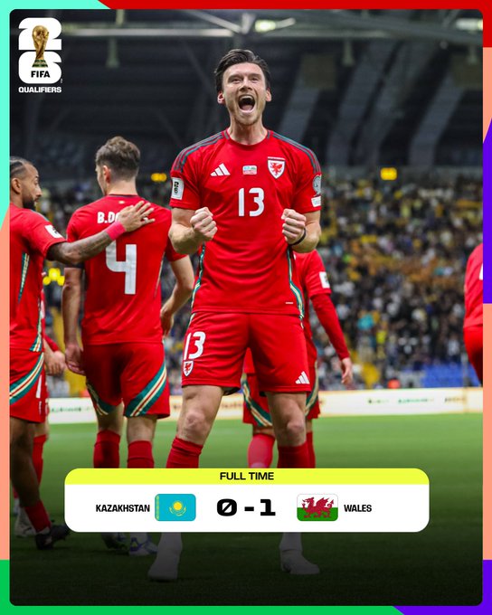 Tras sufrir su primera derrota en su último partido contra Bélgica, Craig Bellamy presenció cómo su equipo conseguía tres puntos tras una dura lucha a domicilio ante Kazajistán. Los visitantes se adelantaron en el minuto 24, con Kieffer Moore, del Wrexham, marcando a toda velocidad en su partido número 50 con Gales, tras un cabezazo atajado por Liam Cullen. Sin embargo, Kazajistán no se quedó de brazos cruzados y casi iguala cuando Galymzhan Kenzhebek lanzó un tiro con efecto, pero el balón se fue rozando el segundo palo.