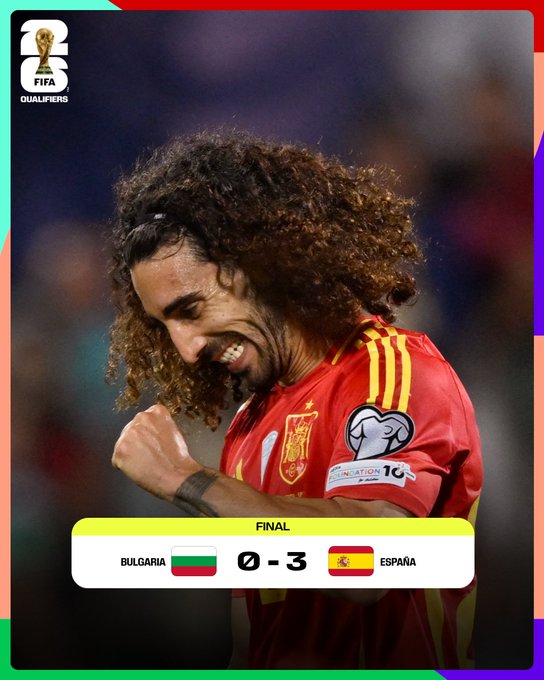 A la selección de España le bastaron aquellos 38 minutos para liquidar a Bulgaria en su visita a Sofía. En su presentación en las eliminatorias ganó por 3 a 0 en el grupo E. A los 5 pasó a ganar con un gol de Mikel Oyarzabal, que tuvo una precisa asistencia de Martín Zubimendi. A los 30, Marc Cucurella capturó un rebote, ejecutó un potente zurdazo y consiguió el 2 a 0. A esa altura, la Furia merecía golear, pero fallaba sus definiciones. Y poco antes del cierre del primer período llegó el tercer tanto: un córner desde la derecha por parte de Lamine Yamal fue conectado por Mikel Merino, que ganó en las alturas y convirtió de cabeza.