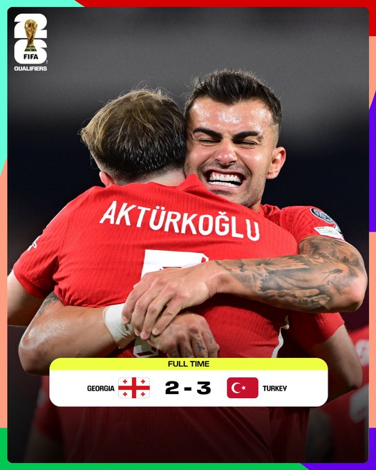 Mert Muldur marcó el 1 a 0, y Kerem Aktürkoglu, el 2 a 0, también en la primera etapa. En la segunda, Aktürkoglu estableció el 3 a 0, pero los georgianos comenzaron a levantarse. Zuriko Davitashvili descontó y Khvicha Kvaratskhelia convirtió en la última jugada del partido. Turquía lidera la zona E junto a España, del que será anfitrión en Konya.