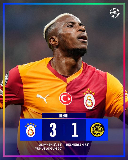 Victor Osimhen estuvo en plena forma y el Galatasaray logró dos victorias consecutivas en la Champions League por primera vez en casi 13 años. El internacional nigeriano solo tardó tres minutos en rematar con maestría un pase en profundidad de Mario Lemina, antes de doblar su cuenta al aprovechar un pase de Fredrik André Bjørkan y regatear al portero Nikita Haikin poco después de la media hora de juego.