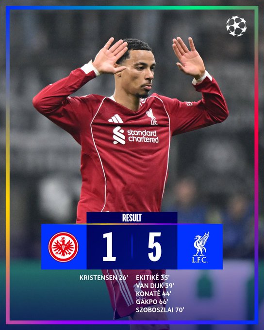 El Liverpool puso fin a su racha de cuatro derrotas consecutivas en todas las competiciones gracias a tres goles en diez minutos de la primera parte que le dieron una cómoda victoria en Fráncfort. Rasmus Kristensen culminó una fluida jugada para adelantar a los locales, pero Hugo Ekitiké empató contra su antiguo club.